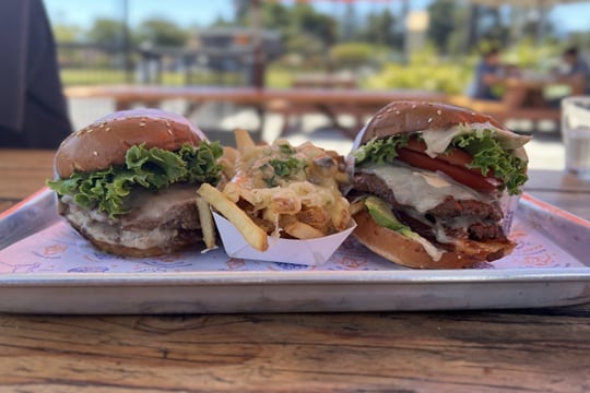別日に違う店舗に立ち寄りましたが、味はとてもおいしいです!写真はSUPER BURGER。パテが2枚入っていて、チーズの種類(無しにもできます)や野菜それぞれについて有無・増量が選べます。MINI BURGERはパテが1枚でした。量は満足できるくらいしっかりありますが、他のハンバーガー屋さんと比べて特に重くなく、SUPER BURGERでもペロッと食べられました。にんにくのにおいを気にしなければ、GARLIC FRIES(たっぷりチーズとガーリックがのったフレンチフライ)もおすすめです!