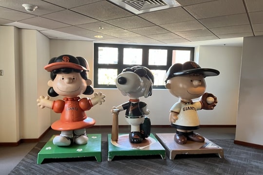 3階席からライトスタンドに向かう通路にスヌーピーとコラボした像が設置されていました。「ピーナッツ」の作者チャールズ・M・シュルツ氏がサンフランシスコ・ジャイアンツの熱狂的なファンであったことから実現したもので、スヌーピー・チャーリーブラウン・ルーシーがそれぞれジャイアンツのユニフォームを着ています!
