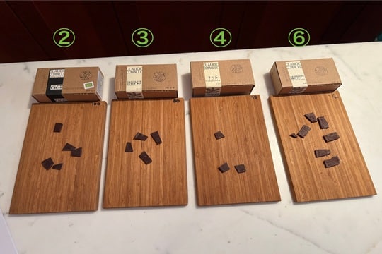 こちらはカカオ75%と砂糖25%で作られた商品。③に比べて砂糖のざらっと感はなく、とても滑らかでした。