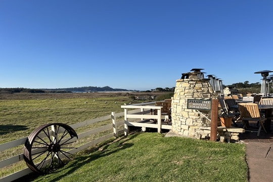 今回は時間が合わず食事での利用はしなかったのですが、せっかくなので立ち寄ってみました。こちらのレストランは、俳優・映画監督かつカーメル市長を務めたこともある、クリント・イーストウッドさんが所有しています。歴史ある牧場を1986年に購入し、マンション開発の危機からこの土地を救ったとのことでした。テラス席のすぐ目の前には雄大な牧場が広がり、たくさんの羊がのんびり暮らしています。食事で利用したらとても優雅な時間を過ごせるだろうなと感じました♩
