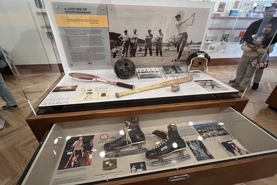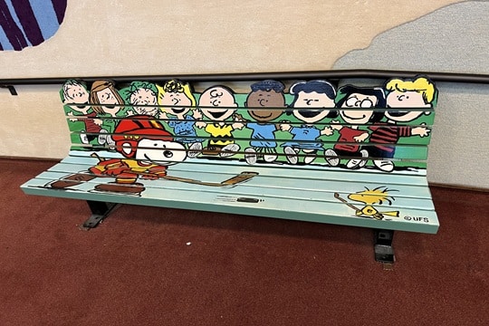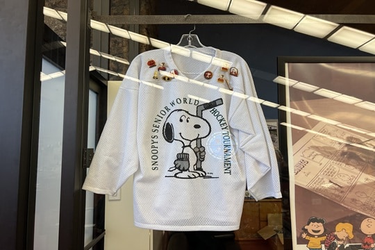 1階はピーナッツ商品・スケート用品・アイスホッケー用品を専門に販売するギフトショップ、2階はギャラリーになっています。レッドウッド・エンパイア・アイスアリーナのギフトショップが人気になったことから、アイスアリーナの隣に建設することが決まったようです。ギャラリーにはステンドグラス、アイスホッケーをしているスヌーピーが描かれたベンチ、スヌーピー・シニア・ホッケー・トーナメントのユニフォームやバッジなどが飾られていました。