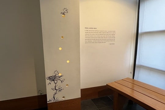 シュルツさんの妻・ジーン・シュルツさん宛てに、彼女の日本の友人オオイハツエさんが贈ったものです。彼女はこの魅力的なものを共有しないのはもったいない!と飾ることを決めたんだとか。