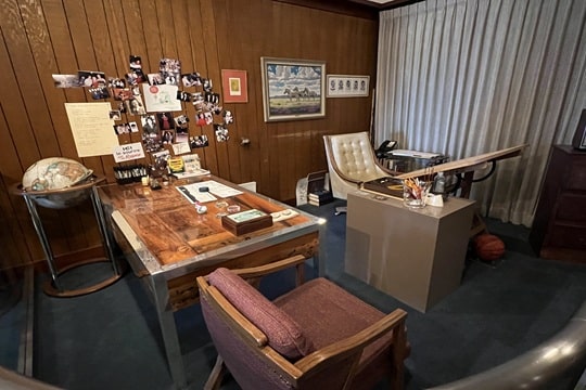 入場券で入口を通って突き当りに大きなタイル壁画があります。こちら、実は漫画のコマでできているんです!そしてさらに驚くべきことに、こちらの制作は日本人のアーティスト・大谷芳照さんという方が手掛けているんです!大谷さんは、大阪鶴見のスヌーピーのアミューズメント施設計画づくりを受託した際、シュルツさんとはじめて出会い、その作品作りによってシュルツさんの心をとらえます。1998年サンタローザにおけるシュルツミュージアム設立計画に参画され、コアスタッフとして尽力されました。大谷さんがデザインしたこの壁画は、3,588枚の陶器タイルからできており、これは1956年から1988年の間に最初に発行された日刊漫画の約10年分に相当するとのことです。大谷さんは各漫画を手作業で選び、ルーシーがチャーリー・ブラウンのためにフットボールを持っている副次的なシーンを構成されました。