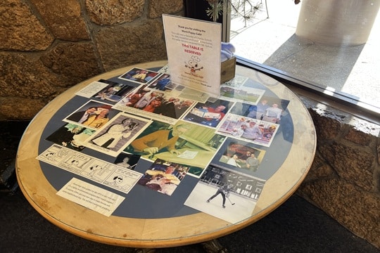 アイスアリーナに併設されているカフェです。窓越しにリンクが見えます。こちらのカフェの暖炉脇のテーブルがシュルツさんの指定席だったので、今でもそのテーブルには「RESERVED」のサインが置いてあります。