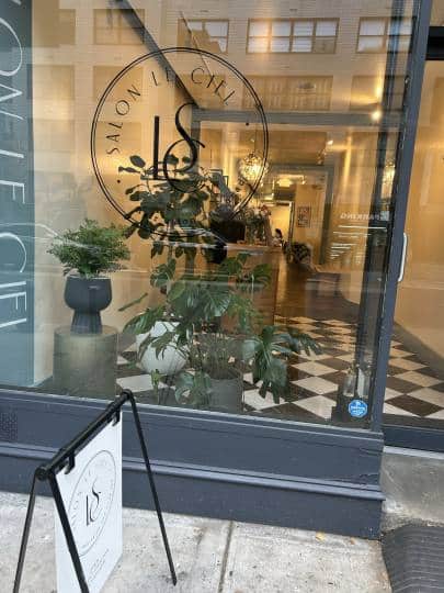 ミッドタウンにあるSalon Le Cielは、外観からすでにお洒落感がにじみ出ています。ウィンドー越しにちらっと見える内部もナチュラルテイストで癒しの空間。これからの時間に期待が膨らみます。