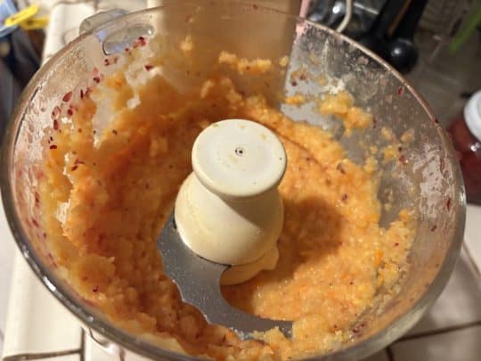 上記の材料をフードプロセッサーでなるべくなめらかになるまでかけて出来上がり。