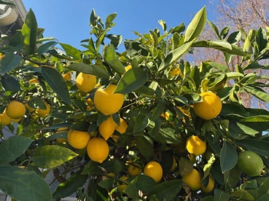 ここカリフォルニアではオレンジ同様、レモンの木をよく見かけます。この季節になるとたくさんの黄色い実をつけた可愛らしいレモンを見かけます。普通のレモンはゴツゴツと大きく、酸っぱいですが、マイヤーレモンは、少し小さめで表皮はなめらか、少し甘味があり、酸味は少なく、独特のよい香りを放ち、果皮の苦味も少ない品種です。クランベリーに負けない位栄養価が高い食材です。